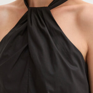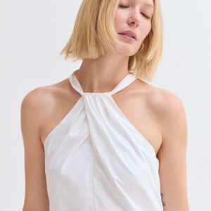 - Halter neckline with self-tie