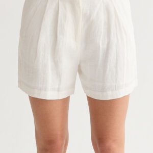 The Madison Pleated Linen Shorts are made with 100% luxe linen featuring front button with zipper closure, thick belt loops, side pockets, back welt pockets, and front pleat detail.