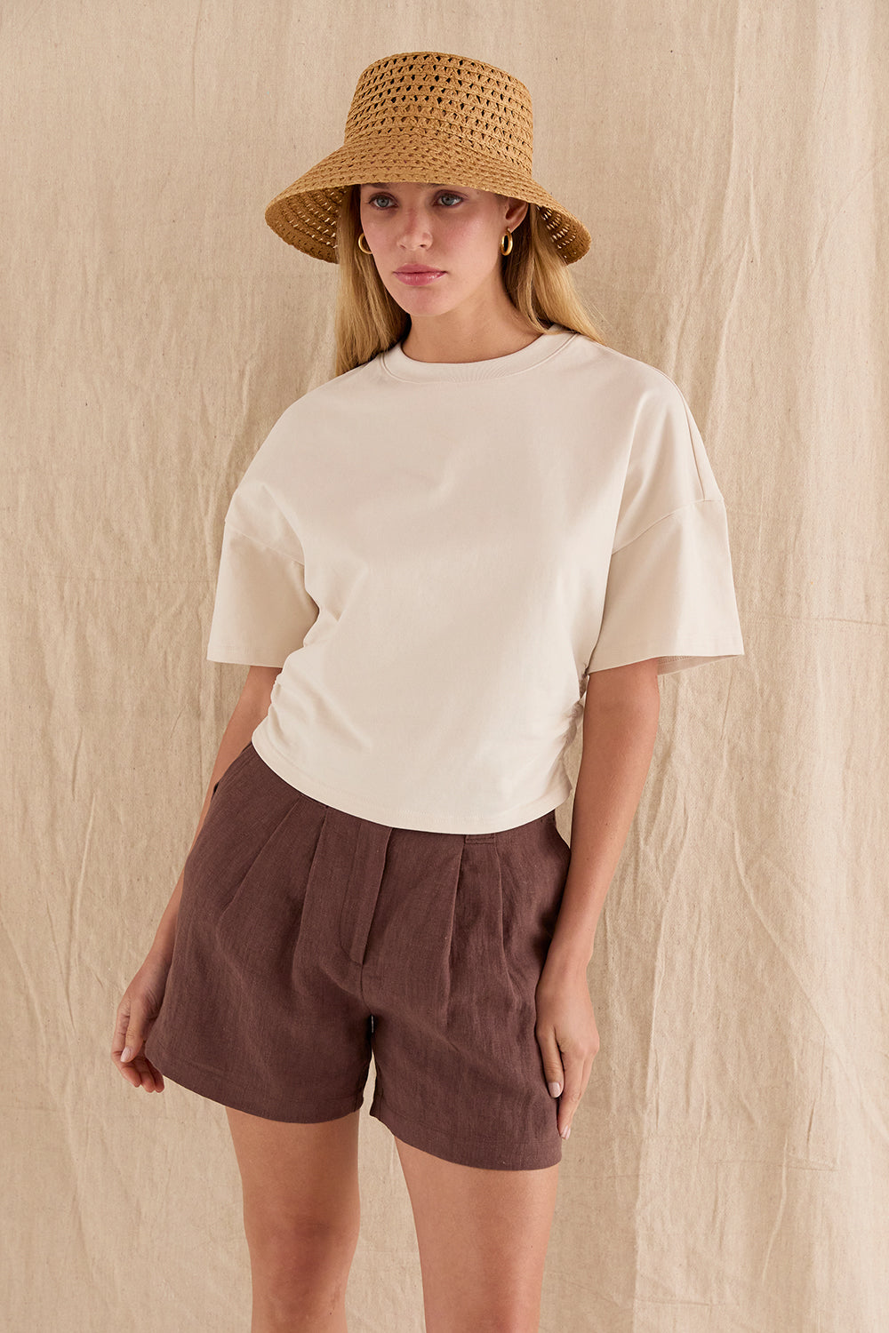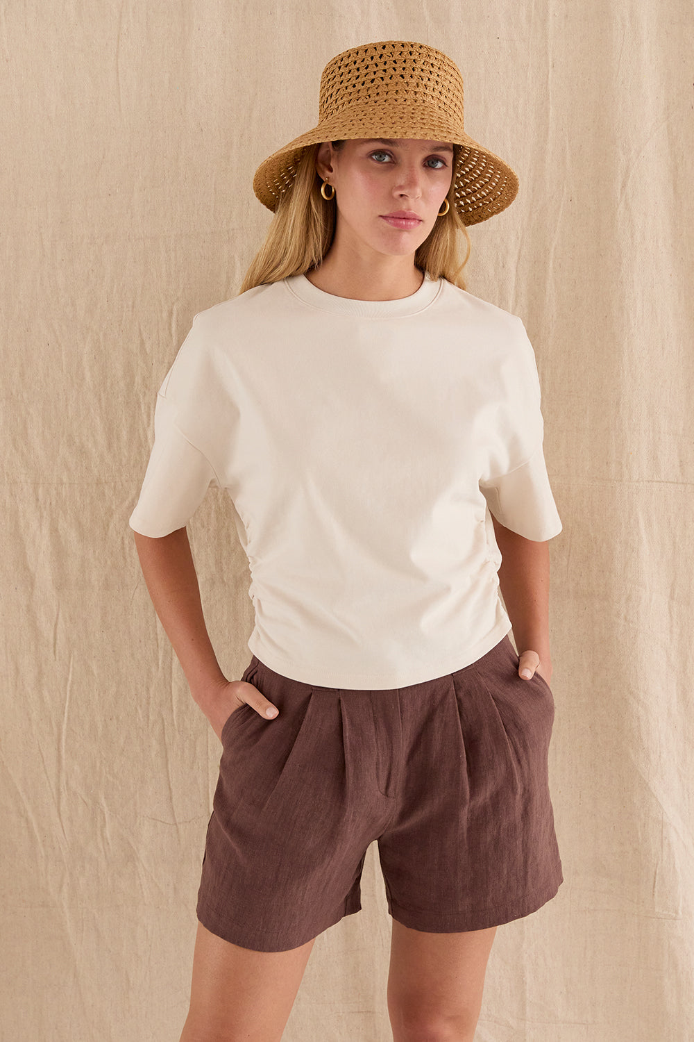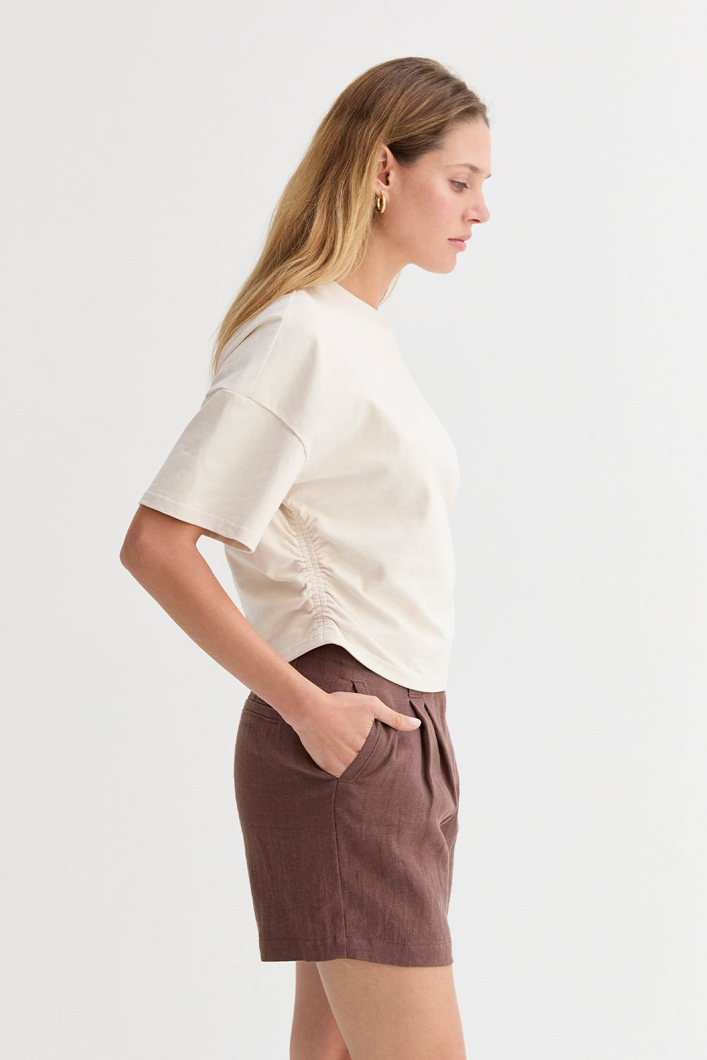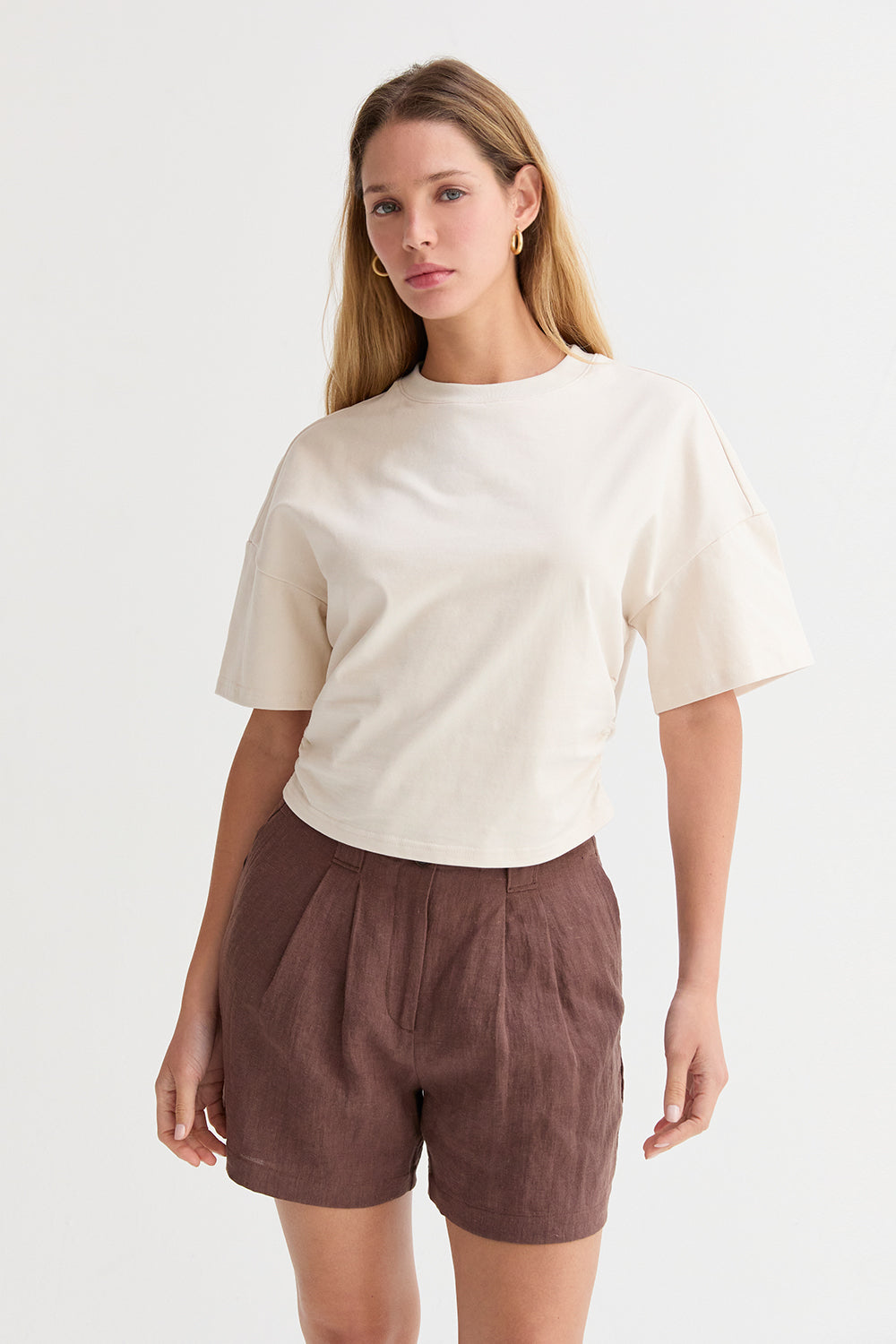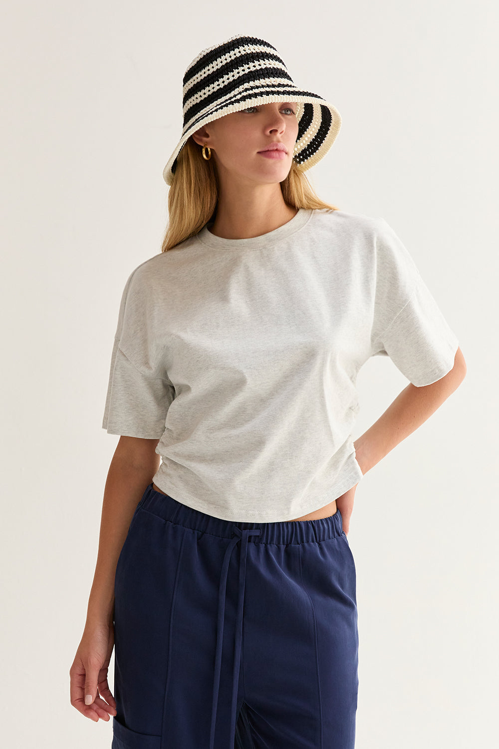 Suzy Semi Cropped Ruched Knit Top
